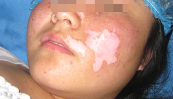 3、白斑的形状:初期白斑多为指甲至钱币大,近圆形、椭圆形或不规则形,也有起病时为点状减色斑,境界多明显;有的边缘绕以色素带。在少数情况下白斑中混有毛囊性点状色素增殖,后者可增多、扩大并相互融合成岛屿状,白斑处除色素脱失外,患处没有萎缩或脱屑变化,白斑上毛发,可失去色素以至完全变白。》》》怎样能降低孩子白癜风扩散的几率?点击了解